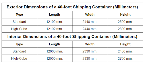 40' Shipping Container Dimensions